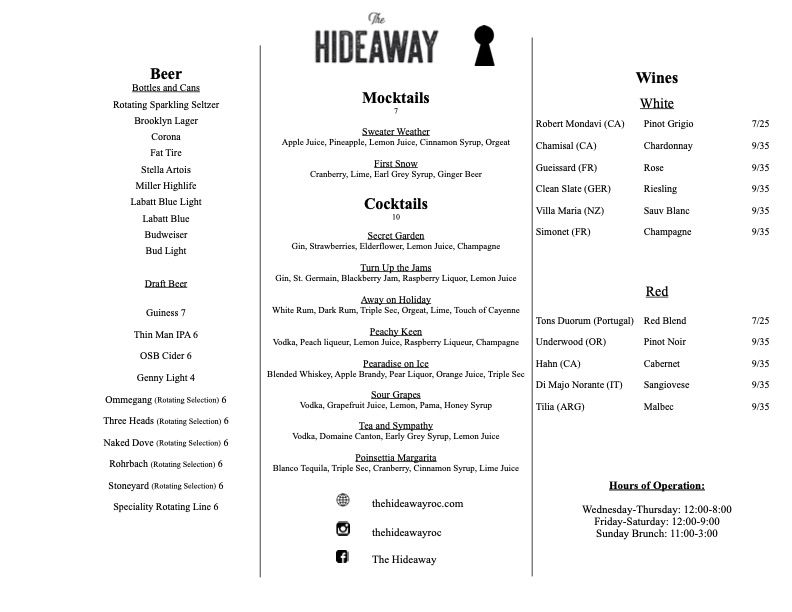 Tucked away at 197 Park Ave, The Hideaway – Rochester is a culinary gem that captivates with its delightful menu. Drawing patrons in with a warm ambiance, the restaurant excels in offering an inventive range of dishes.